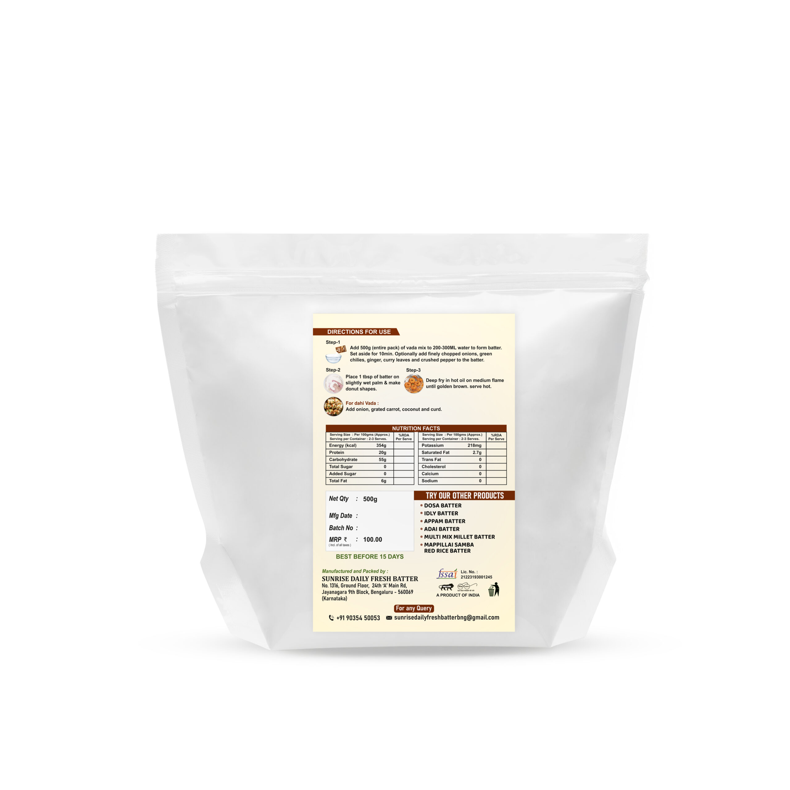 Freshly made with no added preservatives or artificial flavors, our Vada Batter saves you time while preserving the rich taste and texture of homemade preparation. Ideal for breakfast, evening snacks, or festive occasions, it pairs beautifully with coconut chutney and hot sambar.